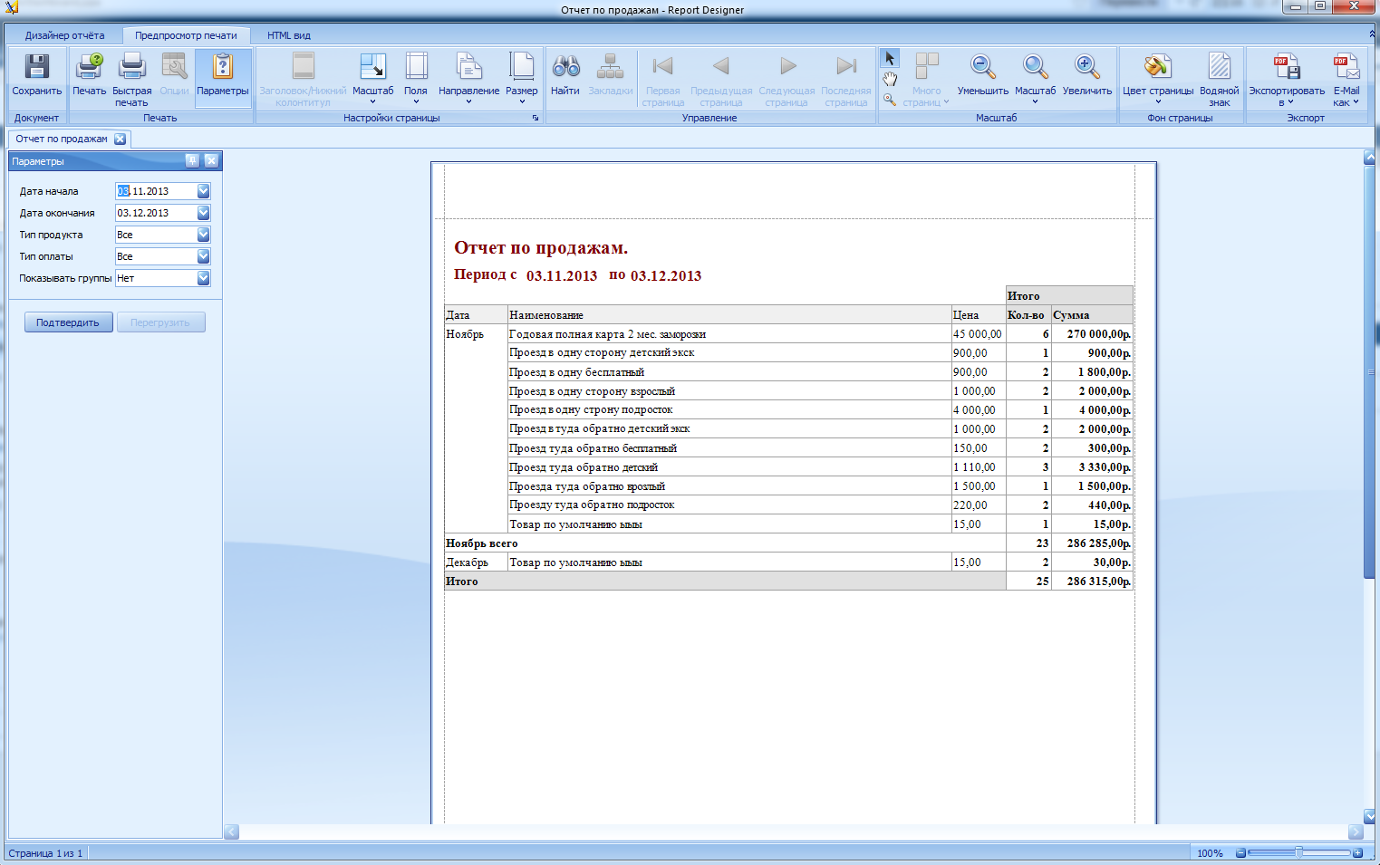 Отчет по продажам